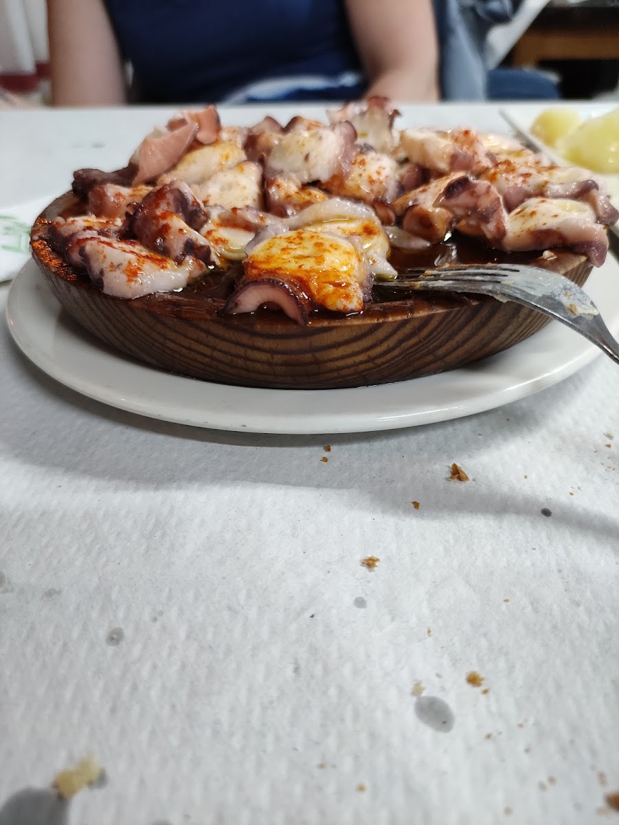 En nuestra estancia en Gijon vimos que este bar de barrio estaba lleno a todas horas así que no podíamos marcharnos sin probar su comida gallega. Si está lleno de gente del barrio es por algo. Pedimos media ración de pulpo a feira, media de croquetas y una de calamares frescos. Como era de esperar, ninguno de los platos nos defraudó. Género de calidad, muy bien preparado. La atención del personal impecable, y el ambiente que se respira es familiar y muy agradable. Para repetir sin duda en el próximo viaje a Gijón.